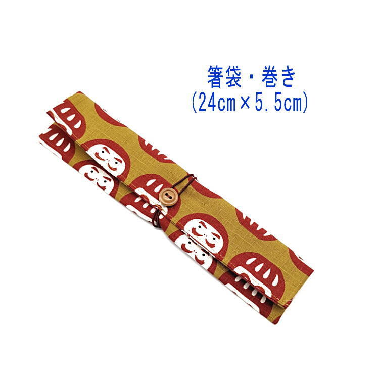 - 箸袋・巻き(24cm×5.5cm)【和柄 だるま柄 マスタード】ドビー織り はし袋 箸入れ 箸ケース マイ箸 和雑貨 ダルマ 達磨 開運 合格祈願 受験