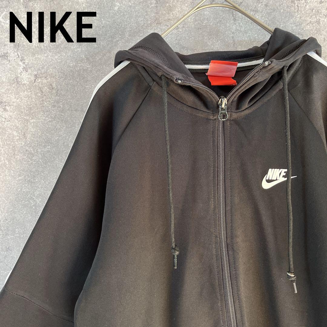 > NIKE ジップアップジャージ フーディ ショルダーライン 黒 Sメンズ D1