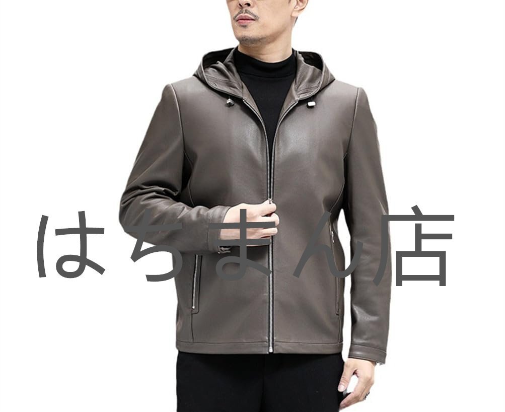 - 本革ジャケット メンズ レザージャケット革ジャン 本革 シープレザー フード付き ライダースジャケット 秋冬 防風 ベージュ M-5XL