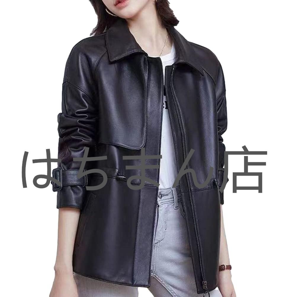 - ラムレザーコート レディース 本革コート ラムレザー ふだん着 本革 羊革コート 革ジャン 春コート 着回し 本革アウター ブラック M-2XL