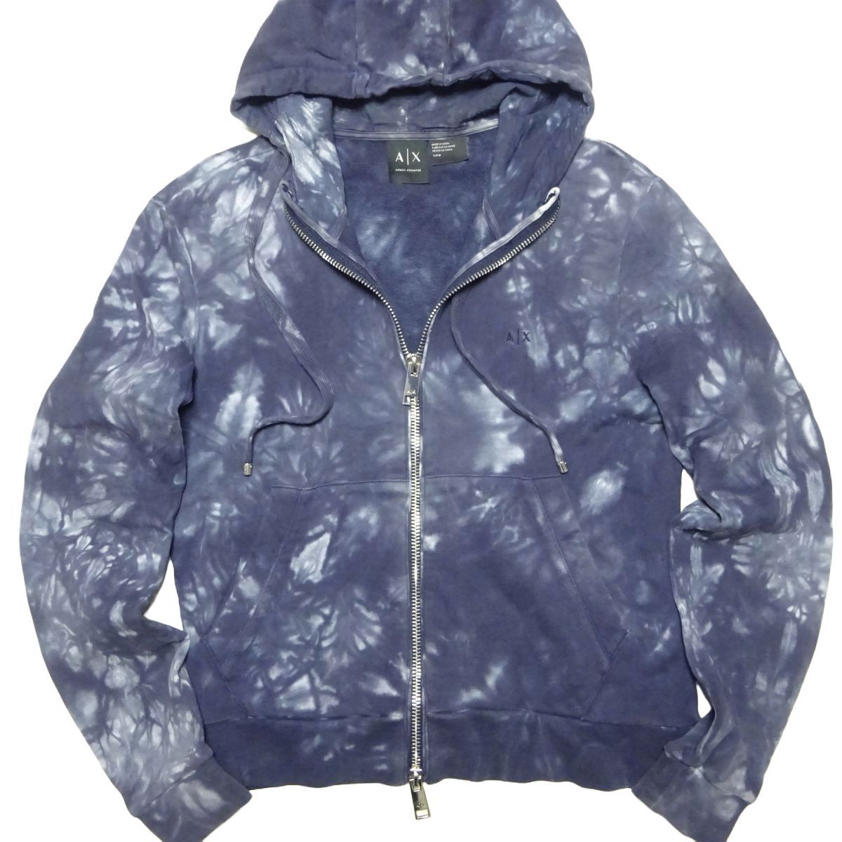 - ★A/X アルマーニエクスチェンジ★タイダイ柄フルジップパーカーS/薄紺スウェットパーカーARMANI EXCHANGEメンズジャケット藍染め
