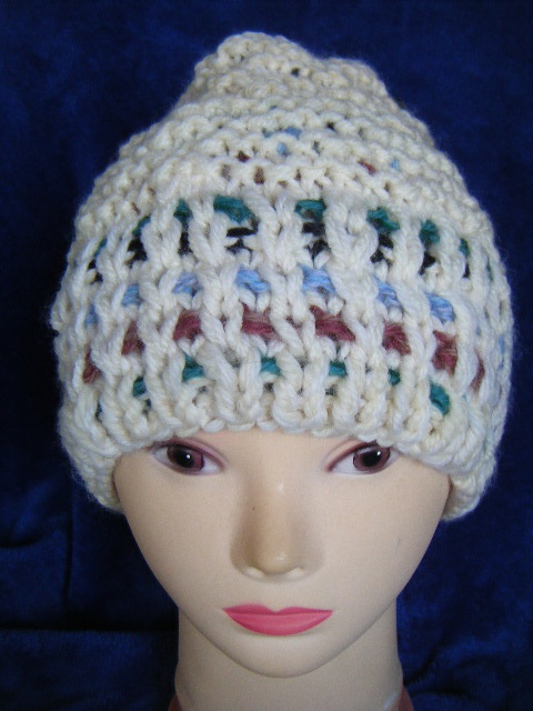 - 冬*手編み男女兼用キャップ*アイボリーにアクセント色 ぬ