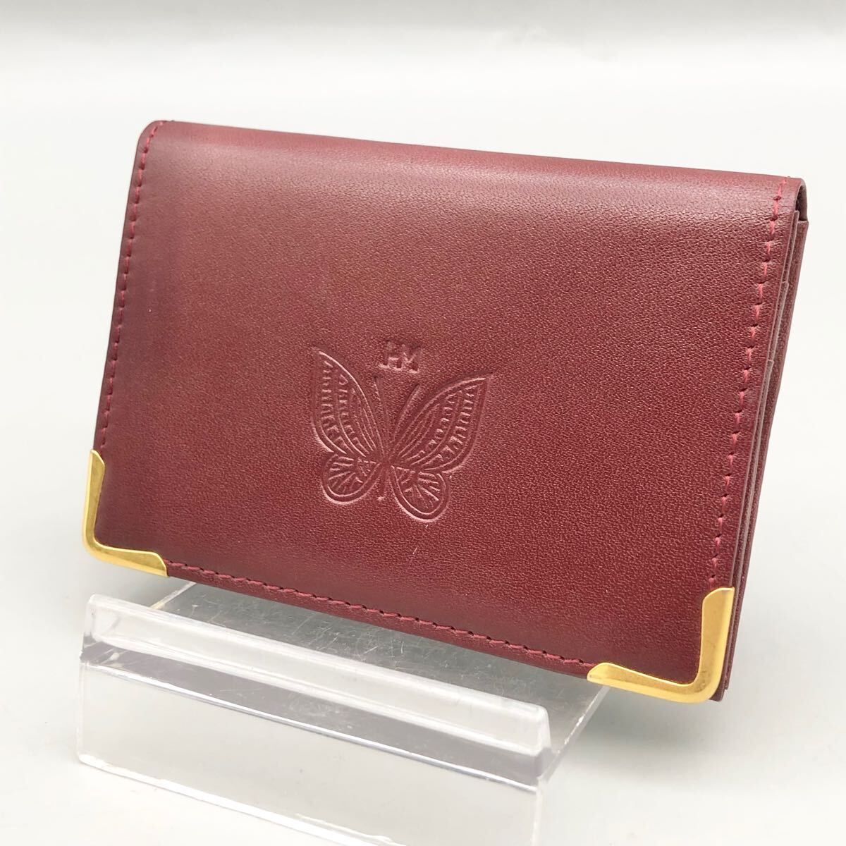 - 【送料全国一律360円】HANAE MORI ハナエモリ バタフライ パスケース 名刺入れ ボルドー レザー カードケース 蝶 森英恵 レディース