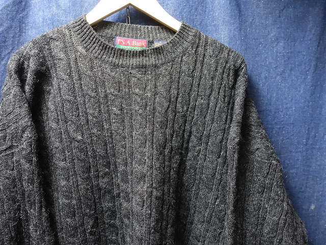 - USA アメリカ 古着 Jos.A.Bank シェトランド ウール クルーネック フィッシャーマン ケーブル ニット セーター M / メンズ / 70