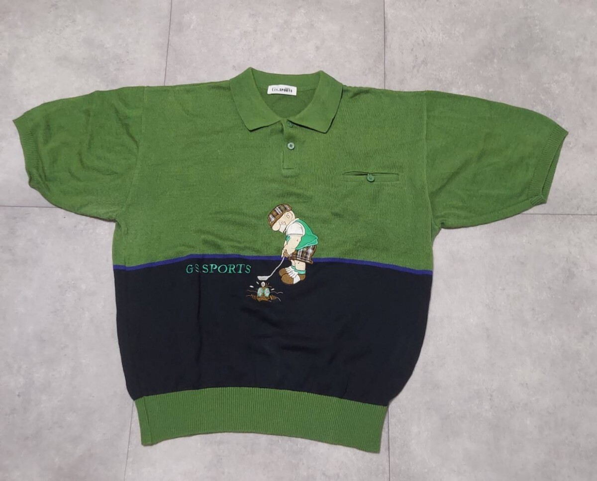 - GS.SPORTS 半袖 ニット セーター ロゴプリント GOLF ゴルフ グリーン サイズLL ポロシャツ