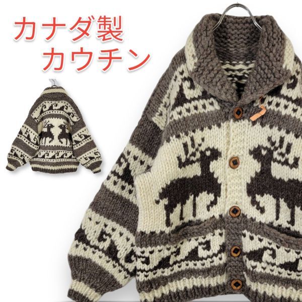 - COWICHAN PRODUCTS カウチンプロダクツ カナダ製 カウチンセーター CA07842 オフホワイト×ブラウン ウッドボタン 肉厚