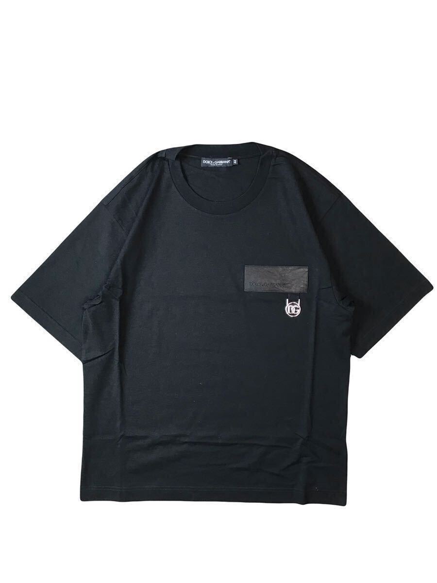 - (D) DOLCE&GABBANA ドルチェ&ガッバーナ レザーロゴパッチ DG金具 装飾 半袖 Tシャツ 44 ブラック