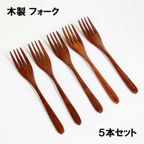 - 木製 フォーク 漆塗り 5本 セット 19cm パスタフォーク テーブルフォーク 大きい 木のフォーク シンプル
