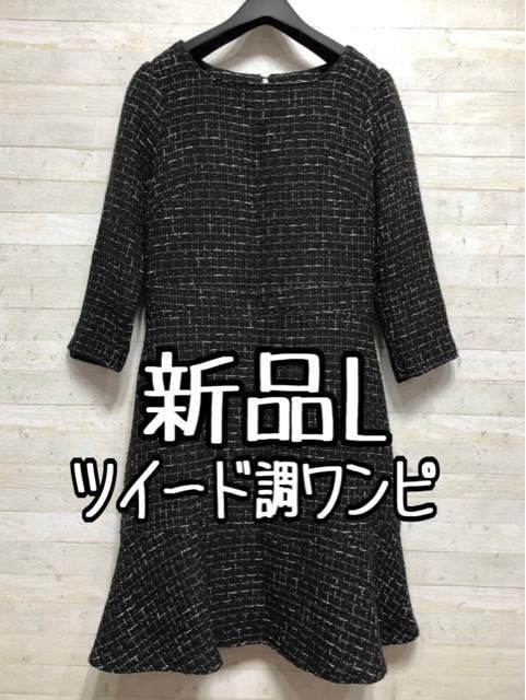 - 新品☆L黒系♪フェミニンきれいめツイードワンピース〇B739