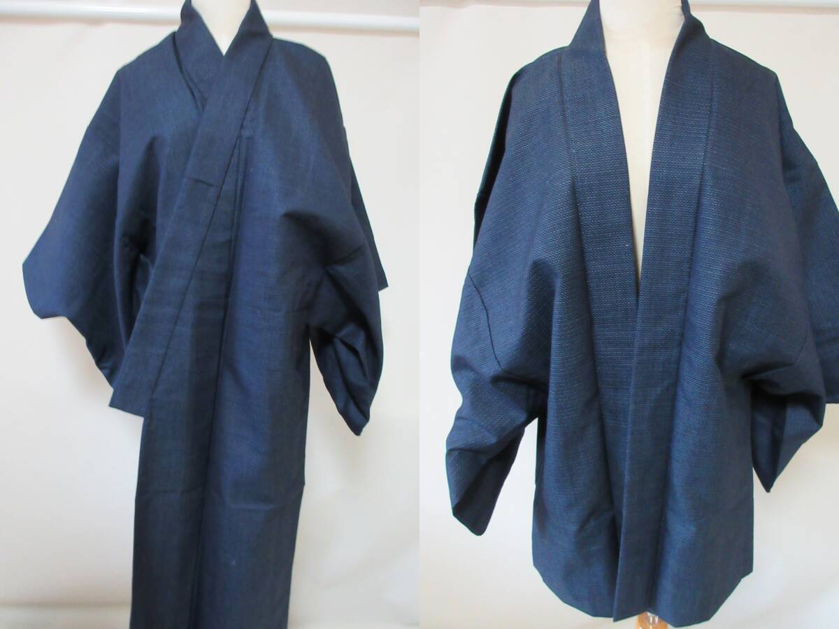 - 48-11 和装 2枚セット 着物 羽織 身丈約132.5㎝/79.5㎝ 仕立て上がり 紺
