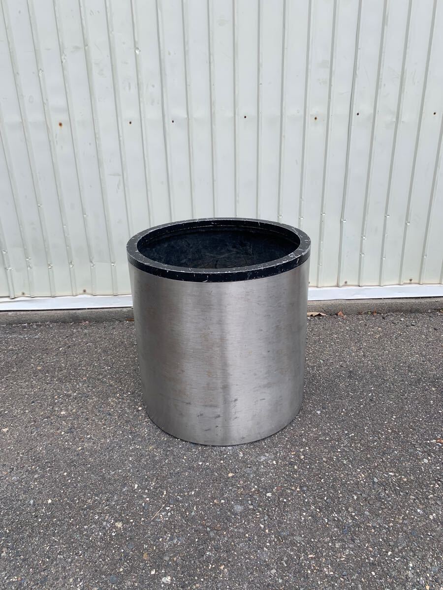 - 経年の雰囲気が素敵な大きなアルミ製円形ケース アンティークビンテージ古道具インテリアディスプレイ店舗什器鉢カバー園芸用品傘立て飾り