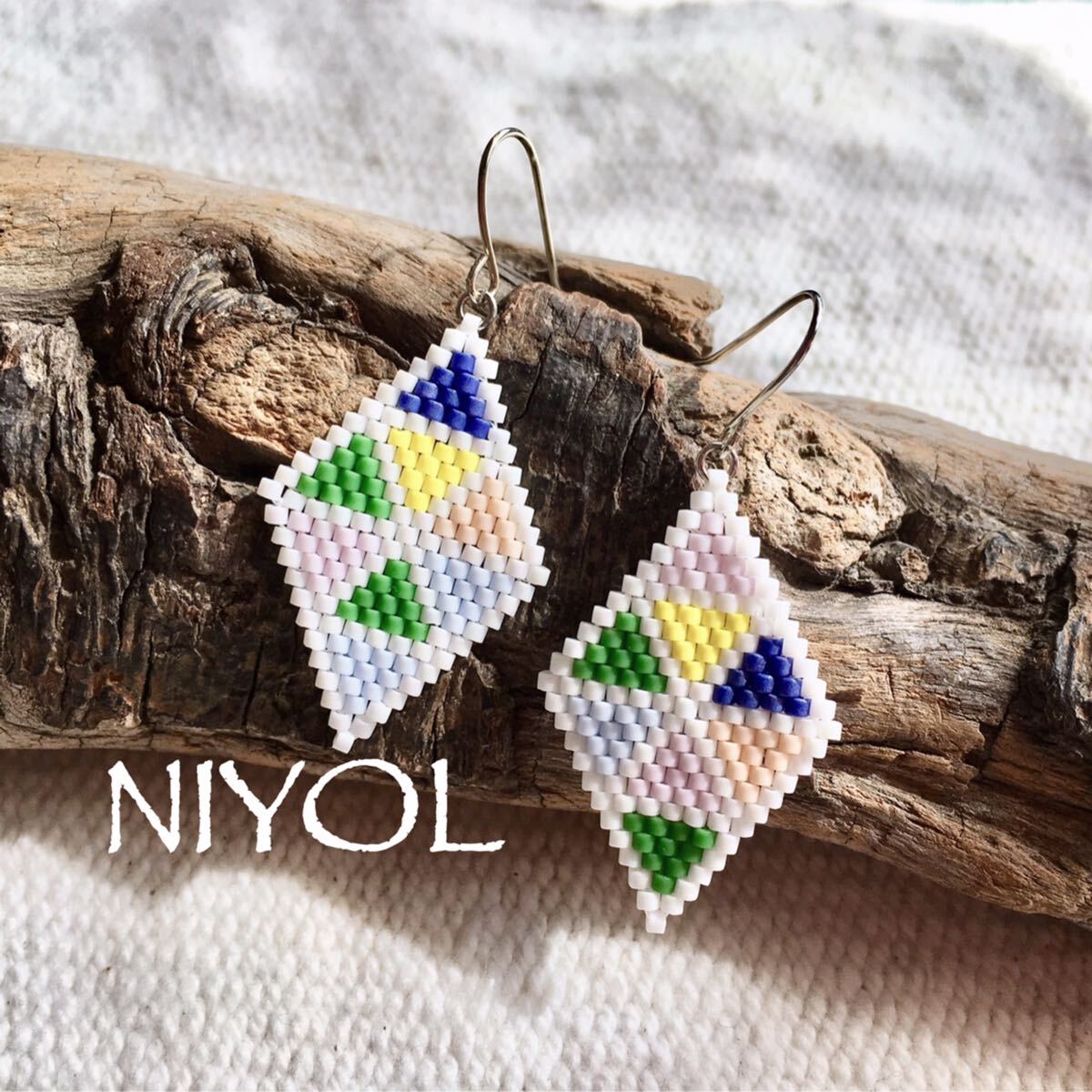 > No.182 ステンドグラス柄 ハンドメイド モザイク パステルカラー サージカルステンレスピアス 樹脂ピアス 春 夏