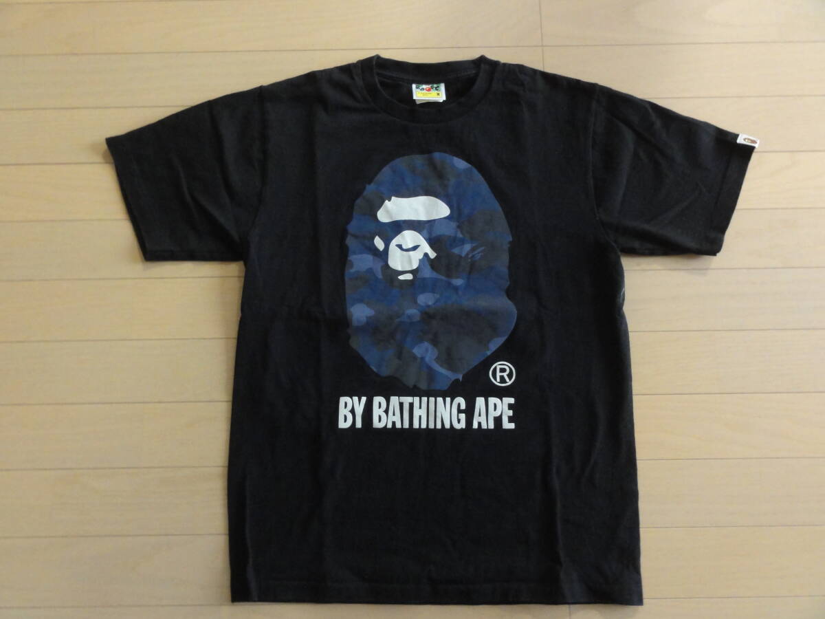 > 美品 A BATHING APE 青色カモ猿顔 半袖Tシャツ 黒 Mサイズ