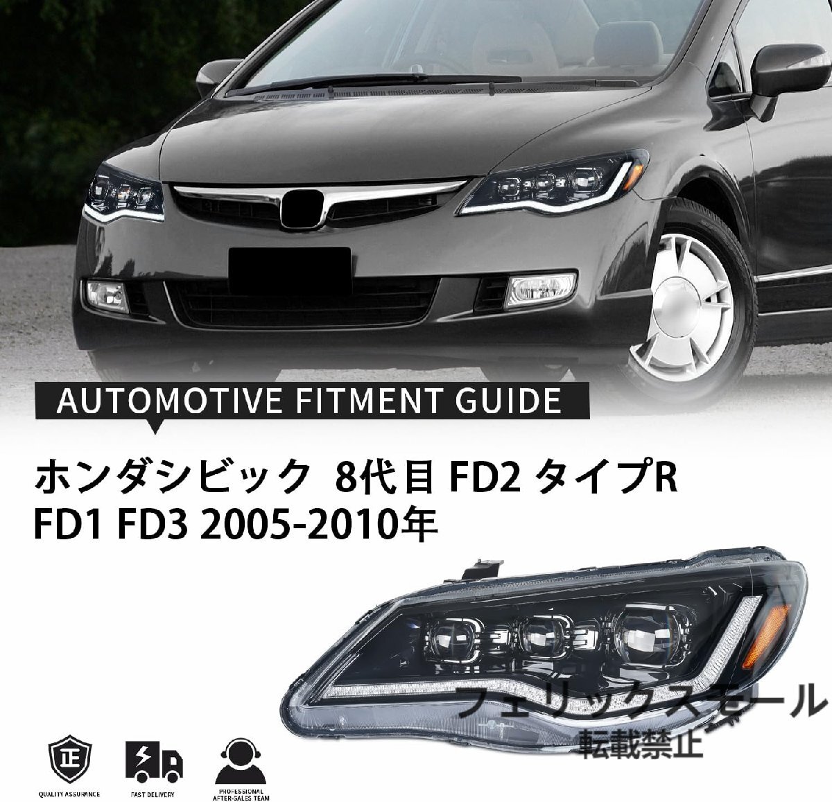 > ★新作★ホンダ シビック 第8代 タイプR ヘッドライト FD1 FD2 FD3型 ポン付け ダブルプロジェクター 全LED 2005-2010年モデル対応