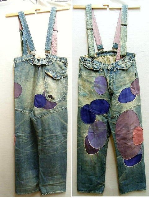 > ◇即決[W33]KAPITAL KOUNTRY パッチワーク サスペンダー ビンテージ加工 リペア キャピタル カントリー デニム パンツ■R55