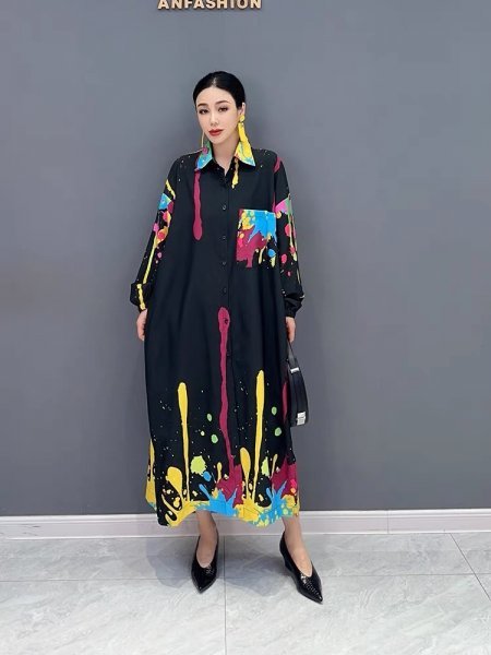 - jd ワンピース ゆったり Aライン 大人可愛 カラフル ロングカーディガン