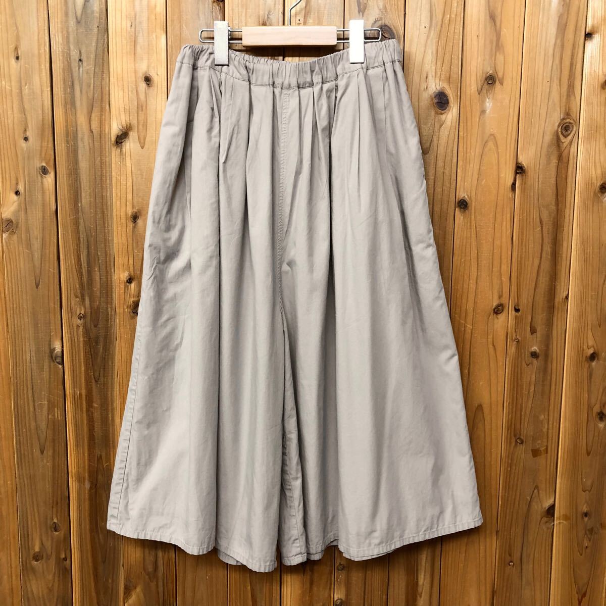 - ichi*イチ レディース ガウチョパンツ ワイドパンツ ロングパンツ タック ウエストゴム ベージュ 無地 カジュアル 古着