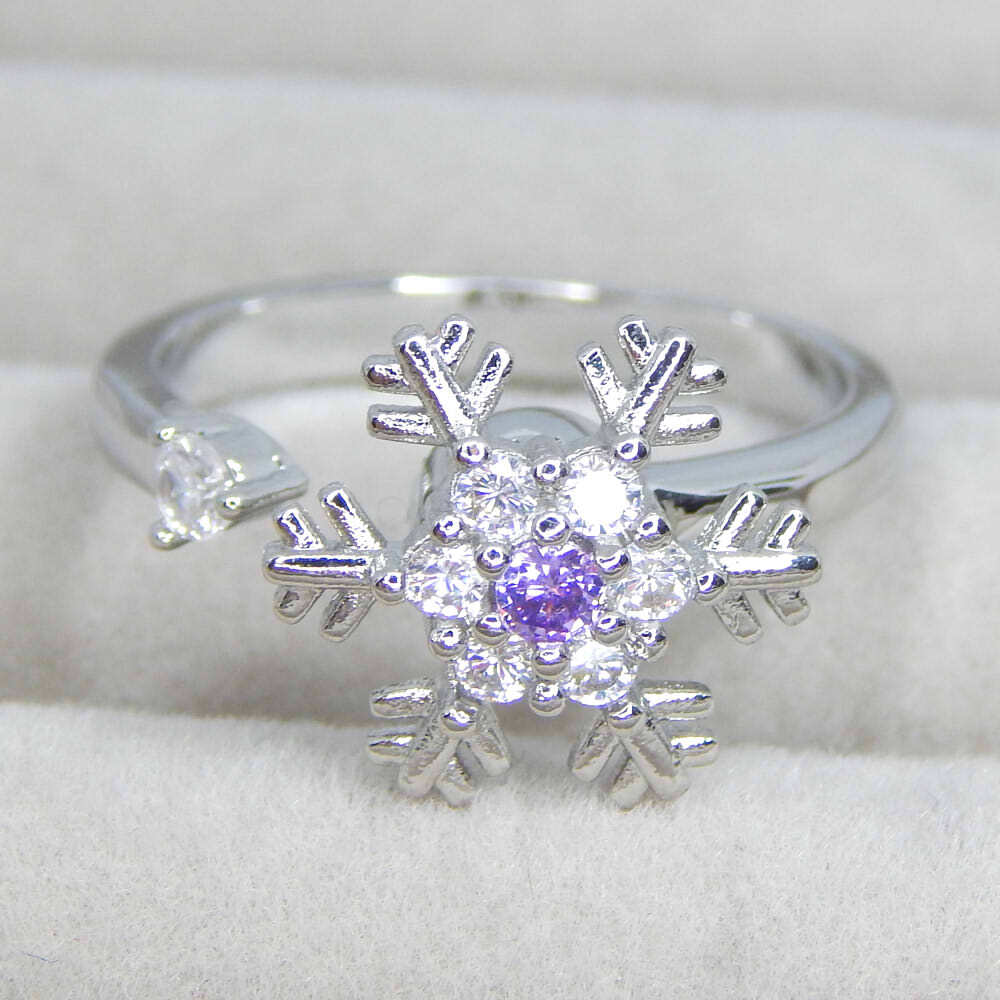 - 新品★送料無料 回る 雪の結晶 CZアメジストダイヤモンドリング フリーサイズ 指輪 シルバー ジルコニア レディース アクセサリー