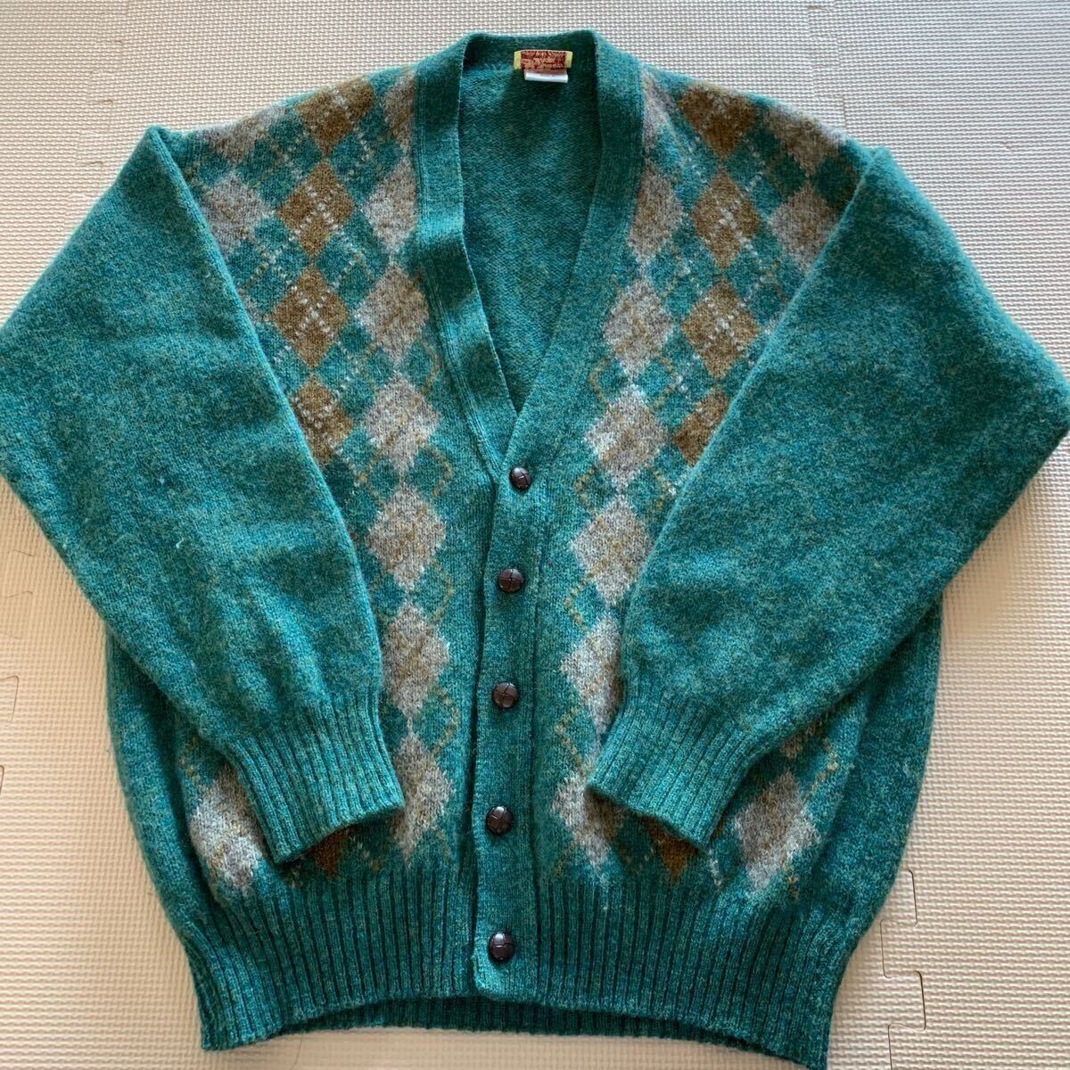 > 【The Sweater Shop Dublin and Kilkenny】アーガイル ニットカーディガン L IRELAND製 クルミボタン グリーン