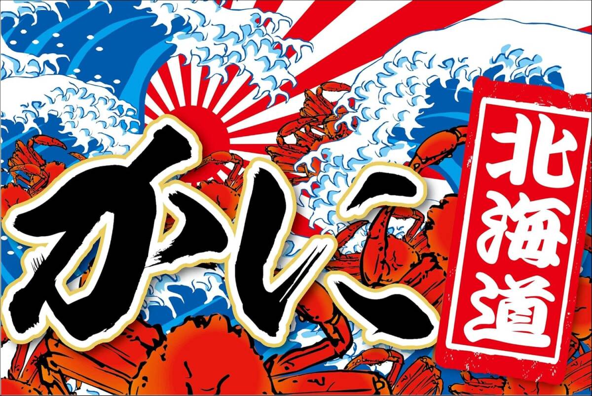 - タペストリー横断幕 「かに 北海道 カニ 北海道 蟹 北海道 大漁旗 新鮮魚介 お持ち帰り 大漁祭 寿司 刺身」何枚でも送料360円!