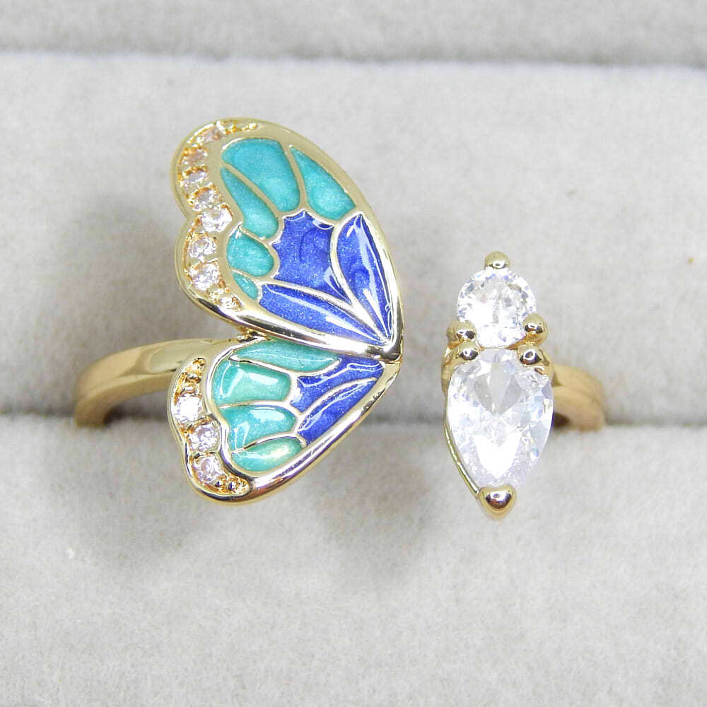 - 新品★訳有品 XR-C20 ブルーバタフライリング レディース 指輪 CZダイヤモンド ゴールド フリーサイズ アクセサリー ジルコニア 送料無料