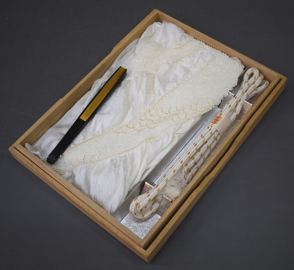 - A03-9【凛々】即決 中古品 正絹 留袖用 帯揚げ 帯締め 末広 3点組 絞り 青海波(ゆうパケット260円)