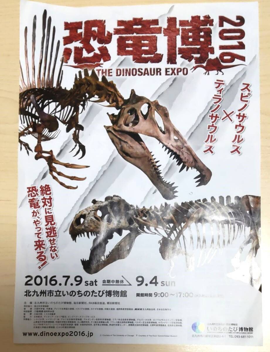 - 恐竜博 2016 北九州市立いのちのたび博物館 チラシ1枚 ☆スピノサウルス ☆ティラノサウルス 展覧会