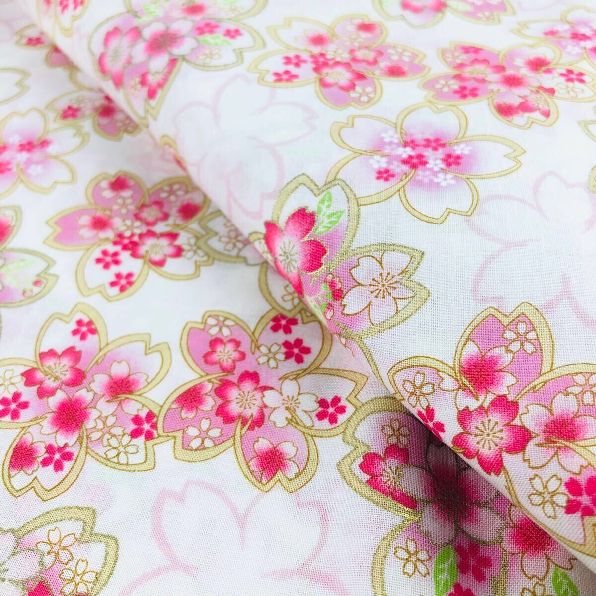 - 1m 桜 金ラメ スケアー 生地コットン布はぎれ小花 小花柄はぎれ 金 和柄 白