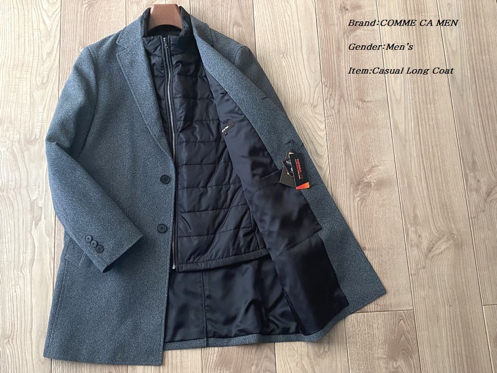 - 新品 定価6.9万円 COMME CA MEN コムサメン メンズ テックツイード 3WAY チェスターフィールド コート Sサイズ グレー