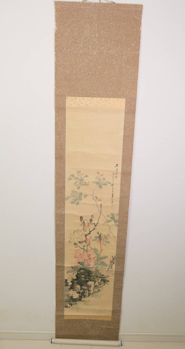 - ♪中古★掛軸 作者不明 玉堂椰子 日本画