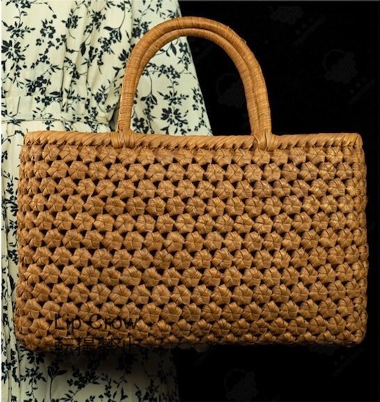 - 定番商品山葡萄 かごバッグ 中 横長 山葡萄 かご バッグ やまぶどう 六角花編み 浴衣 かごバッグ カゴ バッグ 籠 綺麗