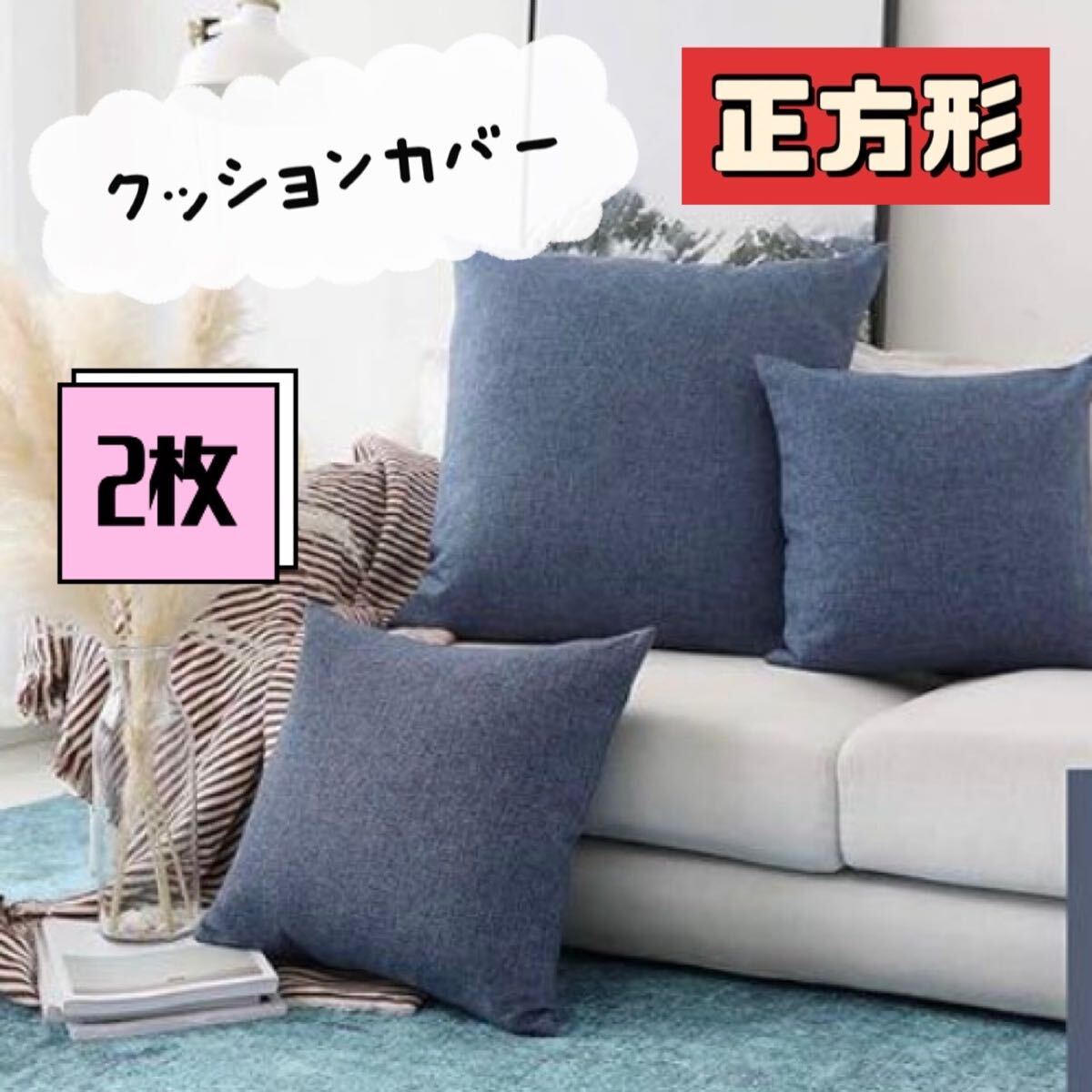 - クッションカバー 2枚セット 正方形 ポリエステル カバー ブルー