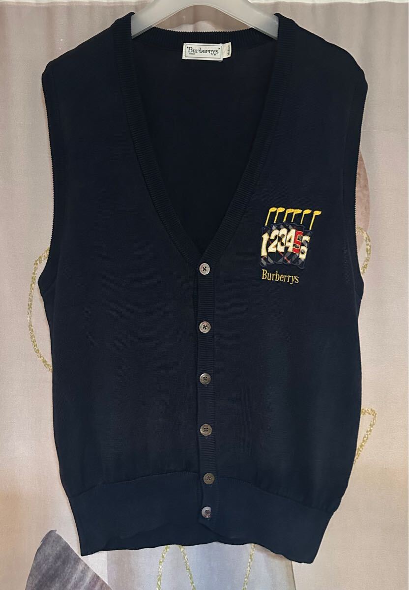 - バーバリーズ ノバチェック ゴルフクラブ 刺繍 コットン ニットベスト ネイビー