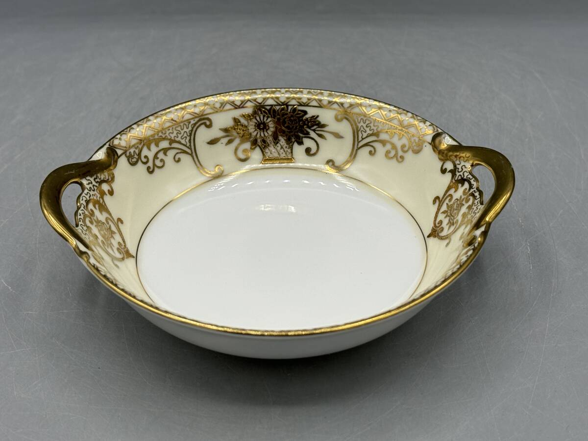 - 里帰り ノリタケ 花 金彩 フラワーバスケット ボウル 深皿 皿 ハンドル マルキ印 (771)