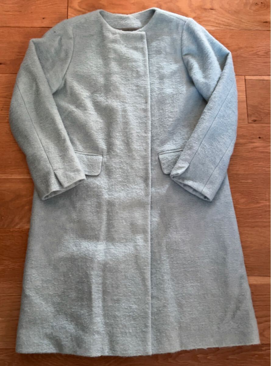 - クレスピ Crespi ★ 日本製 定番 ノーカラー モヘヤ コート アイスブルー 38 軽量 シャギー ロングコート バックスリット