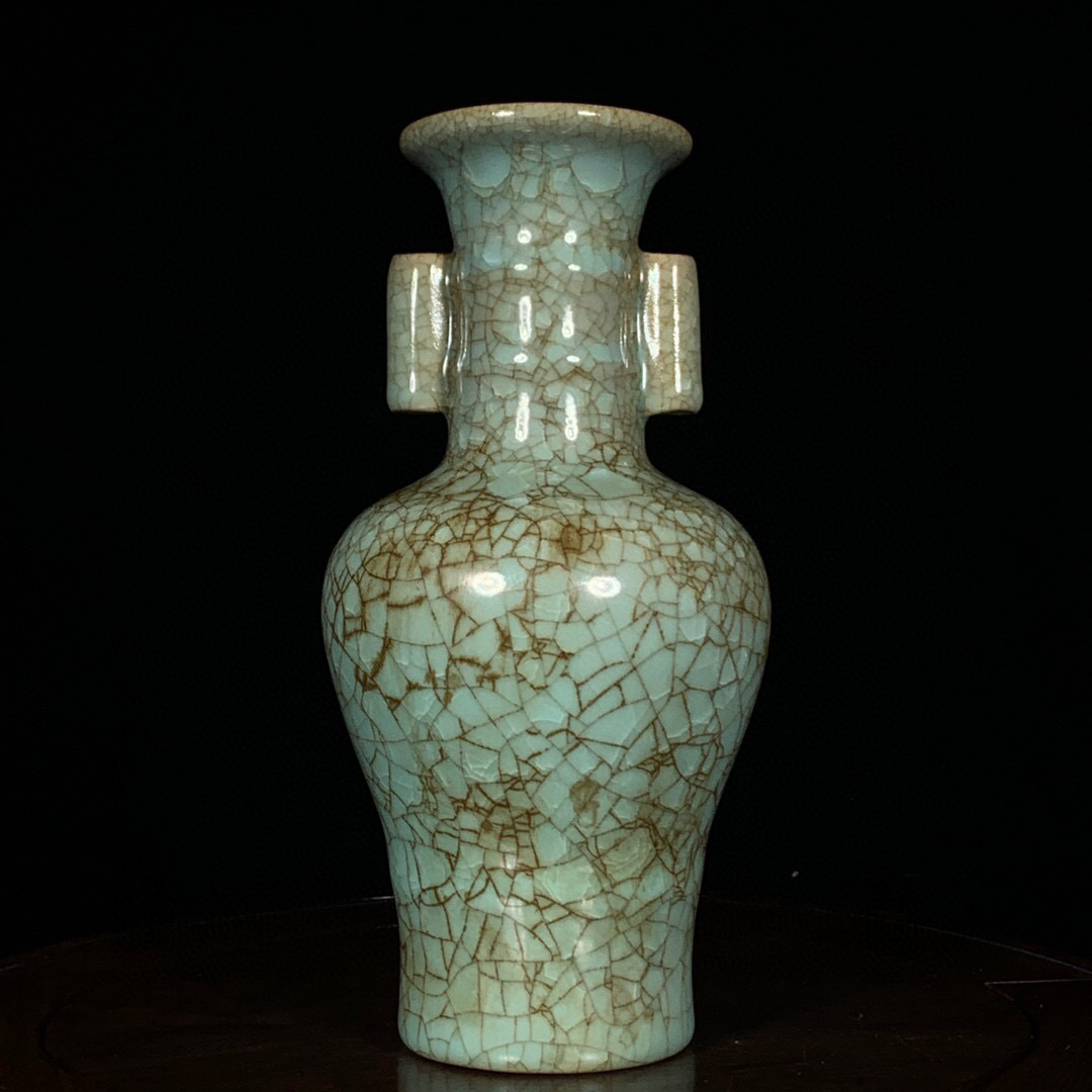 - 【超珍館蔵】宋 古陶瓷品 汝窯 冰裂紋 貫耳瓶 置物 古賞物 古美術品 稀少珍蔵品