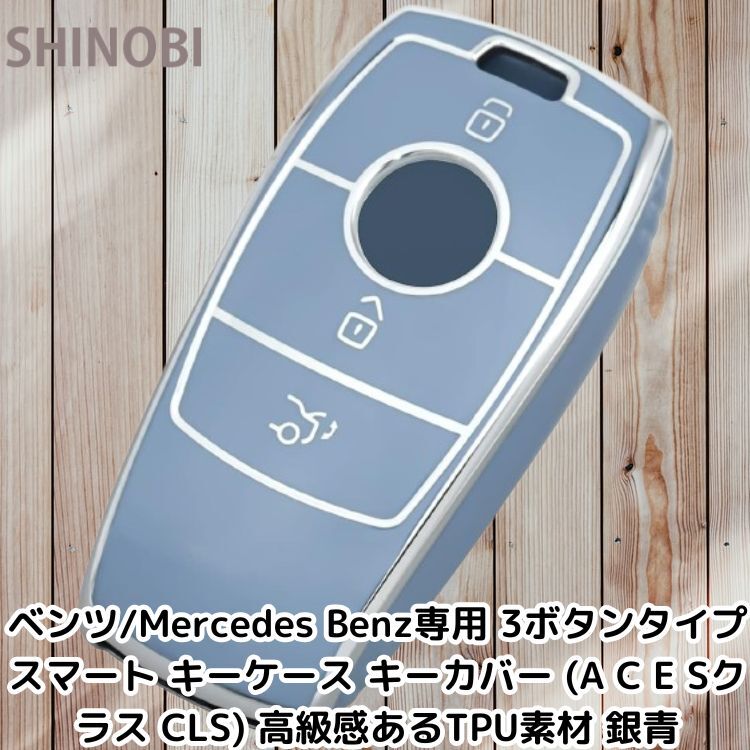 - ベンツ/Mercedes Benz専用 3ボタンタイプ スマート キーケース キーカバー (A C E Sクラス CLS) 高級感あるTPU素材 銀青