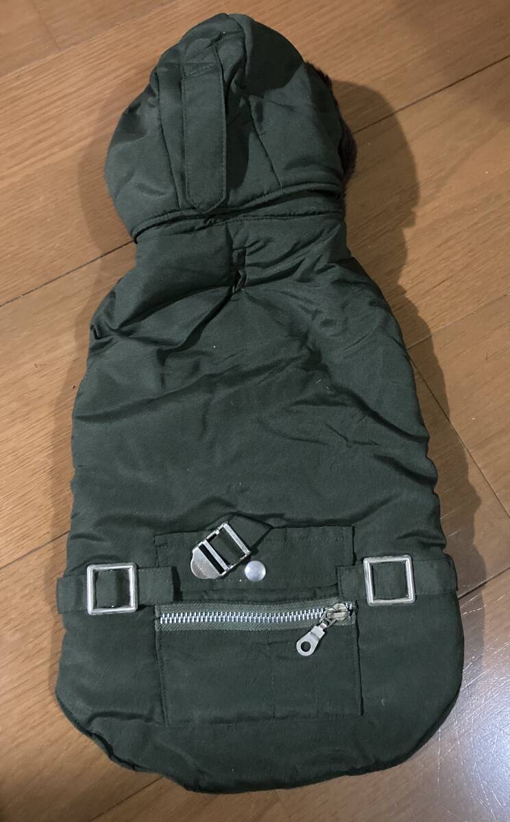 > 未使用 犬 服 ジャケット ボア付き 防寒着 コート ミリタリー色 カーキ 胴44㎝ サイズDL ドッグウェア ペット服