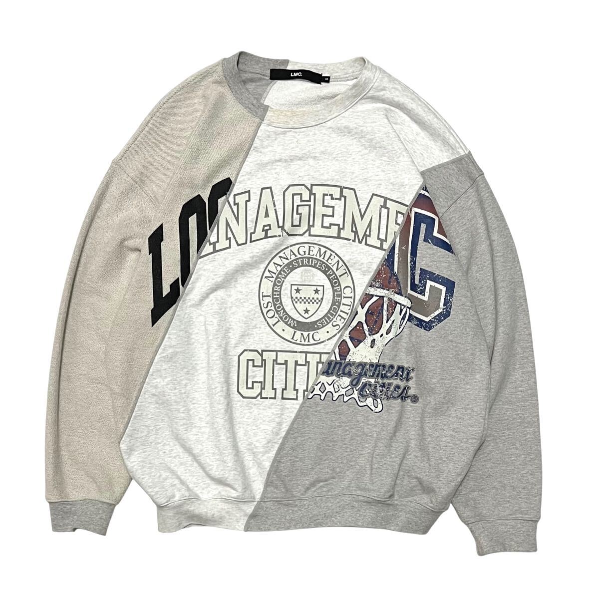 > LMC ドッキングデザイン クルーネックスウェットシャツ グレー XLサイズ相当 オーバーサイズ カレッジロゴ パイル トレーナー