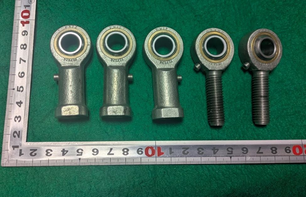 > 【中古・送料無料】5個セット!ミネベア(NMB) M12 ロッドエンド PR12(めねじ)x3個 PR12E(おねじ首下約35mm)x2個