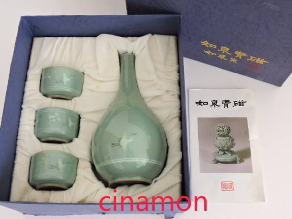- 如泉青磁 如泉窯 徳利&お猪口 鶴(高麗青磁/李連休/酒器