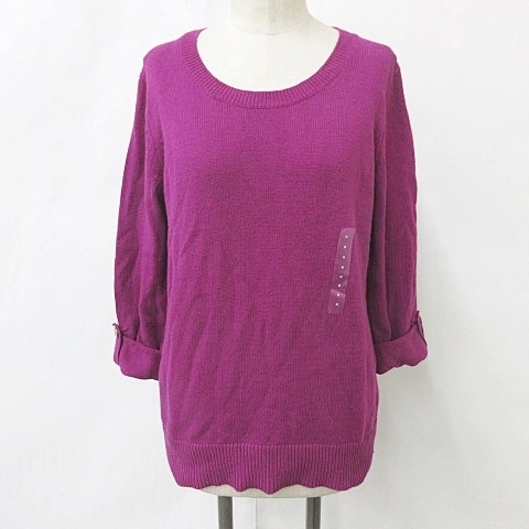 - 未使用品 ギャップ GAP ニット セーター クルーネック 七分袖 パープル 紫 M レディース