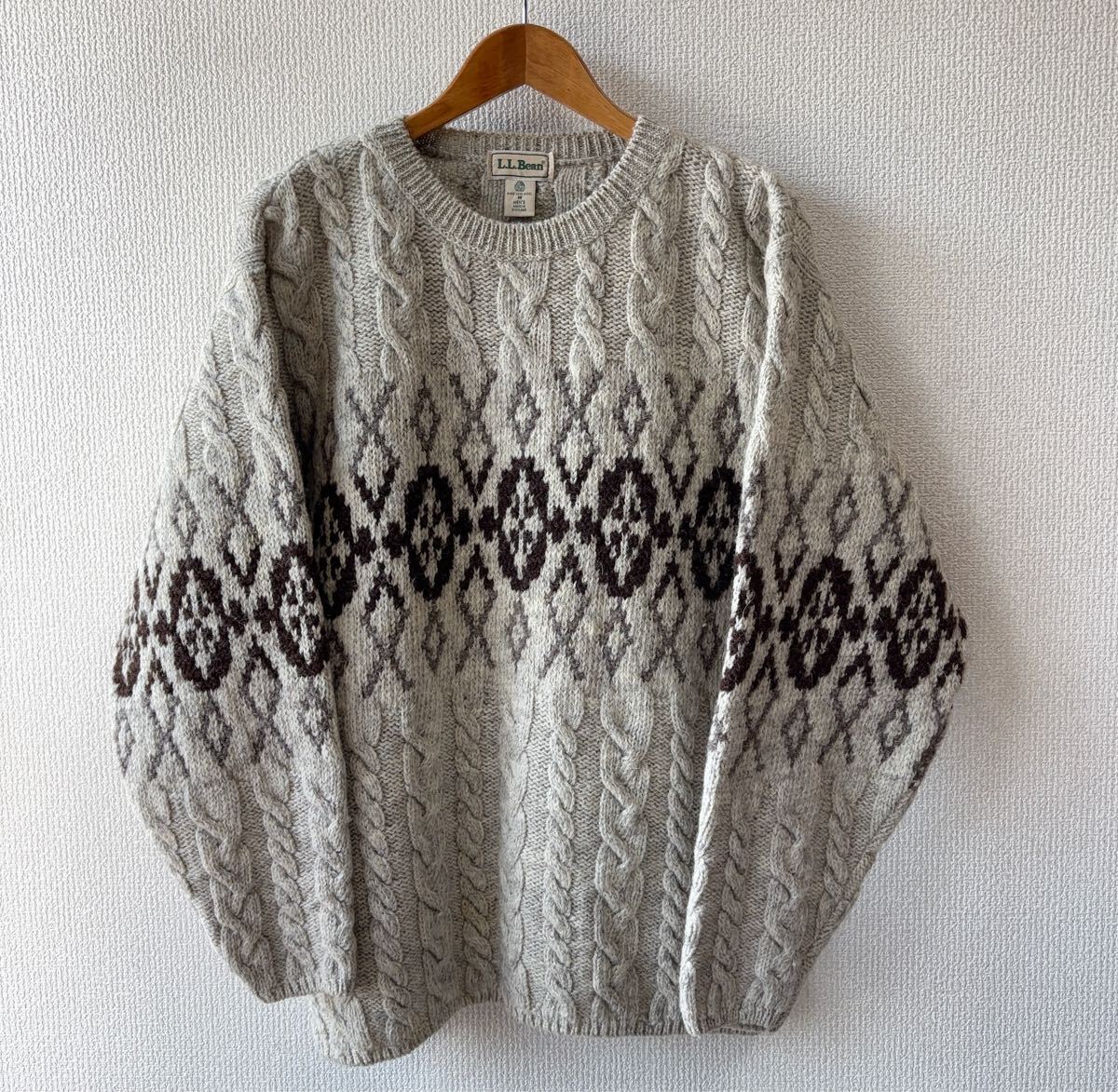 - 90s スコットランド製 エルエルビーン ノルディック セーター M ケーブル編み L.L.Bean ウール ニット
