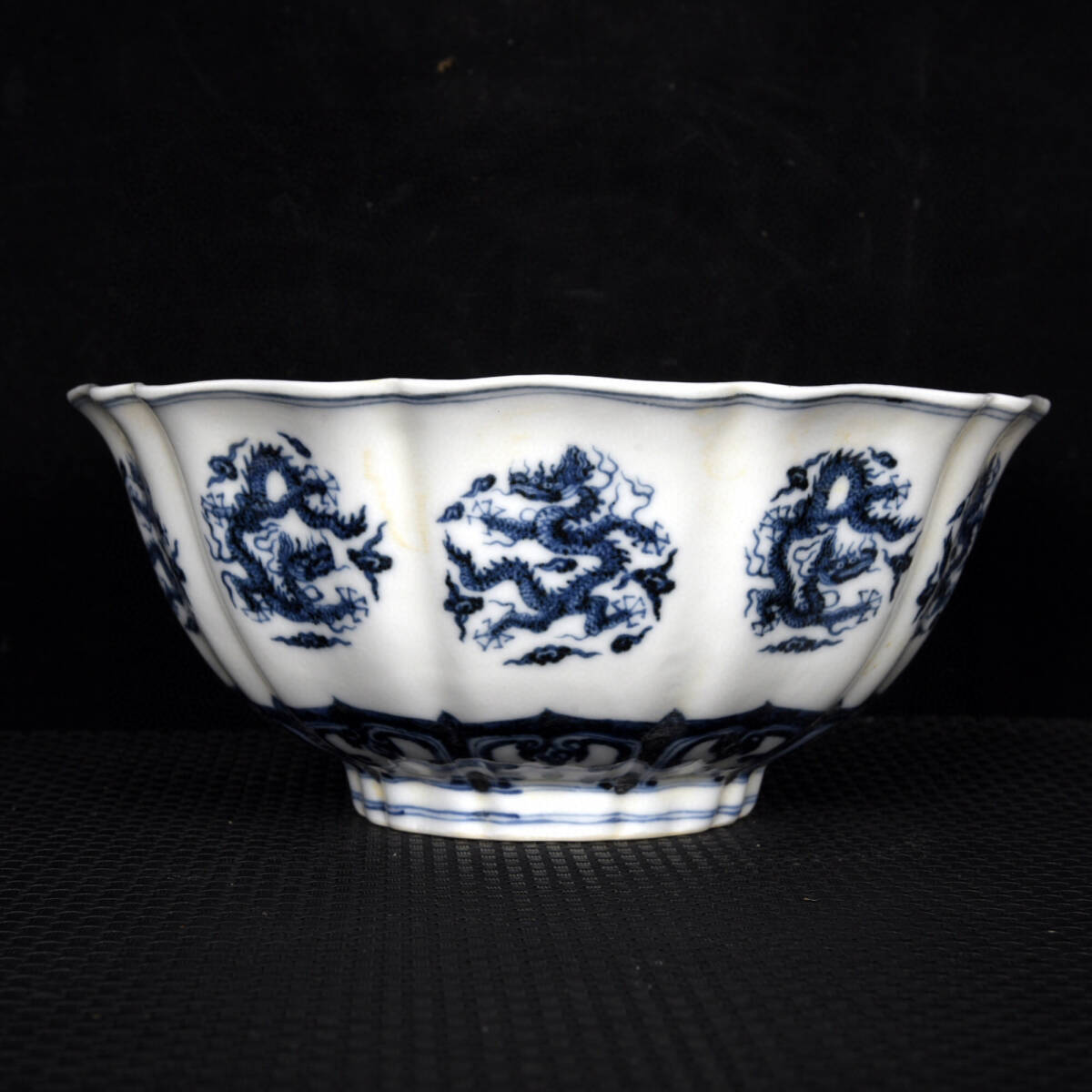 - 『明・宣德年製款・古陶瓷品・青花・龍紋・賞碗』極細工 置物古賞物 中国古玩 中国古美術
