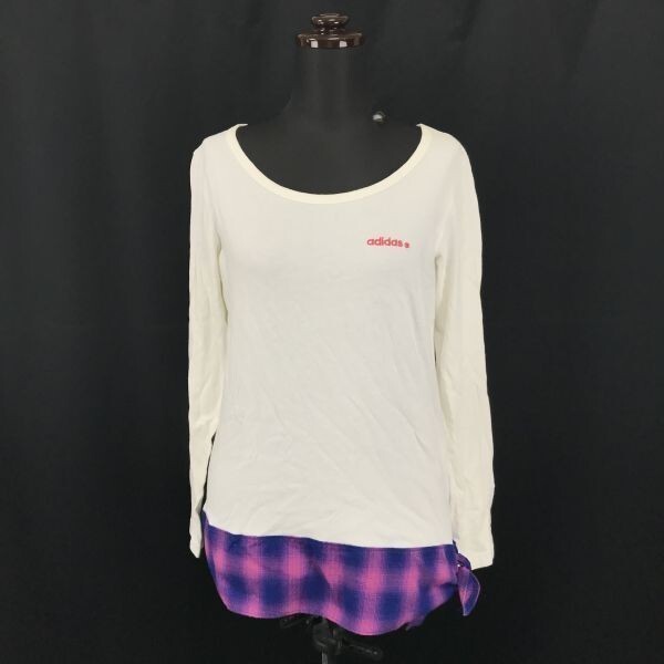 - adidas★NEO LABEL/裾チェック柄/長袖Tシャツ【レディースS/白×紫/ホワイト×パープル】チュニック/アディダス◆BG831