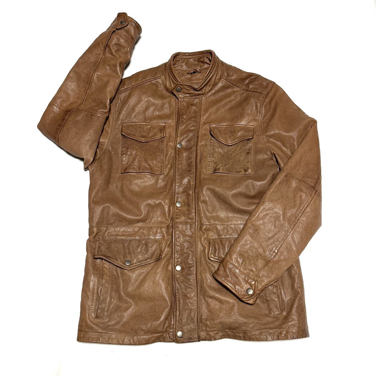 > Lサイズ cortefiel メンズ 本革 ジャケット 革ジャン 茶 ブラウン バイカー パンクロック 即決