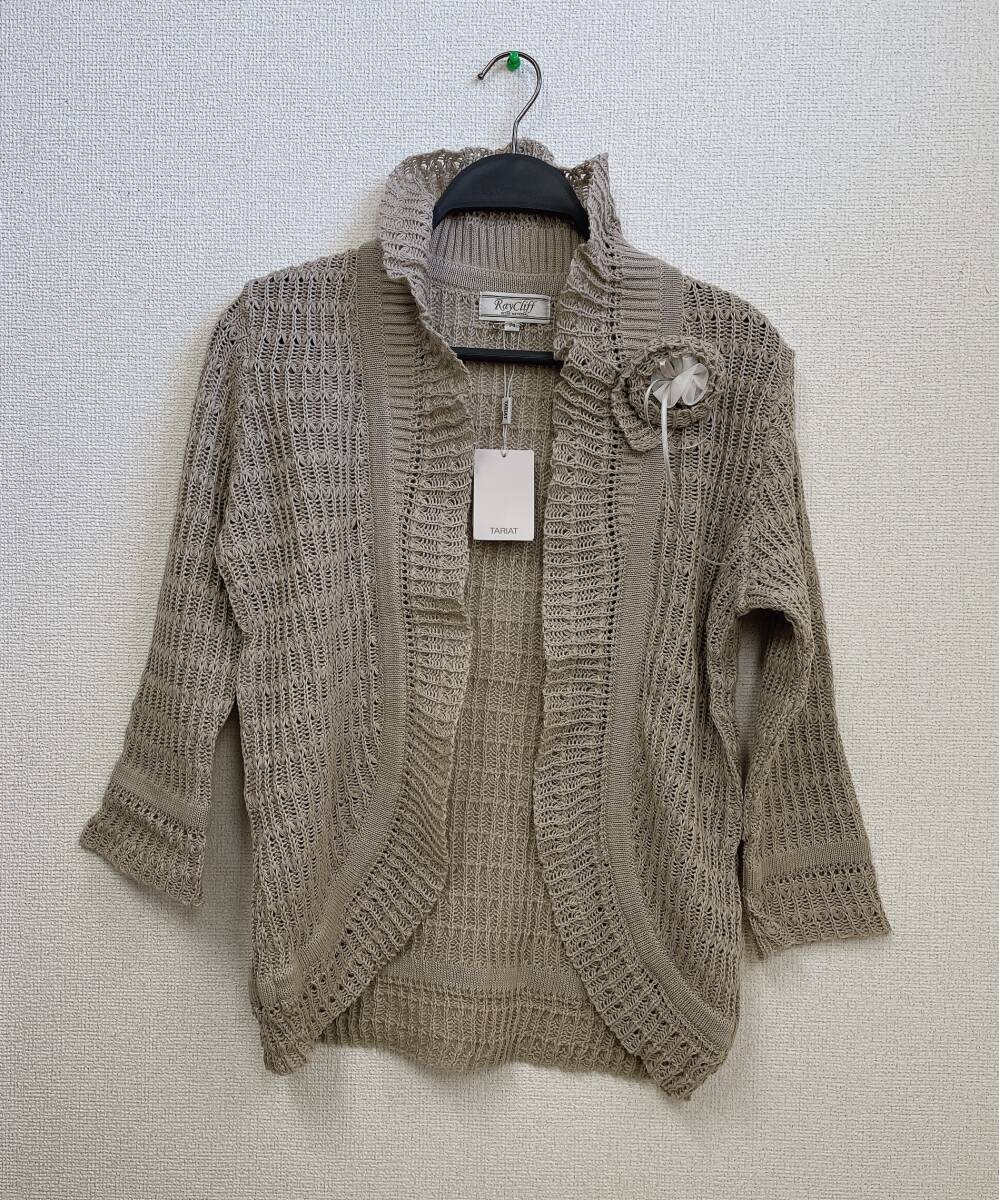 - 【Raycliff カーディガン】 Mサイズ/くすみカラー/ベージュ/コサージュ付き/春先/お出かけにも☆/A612-411