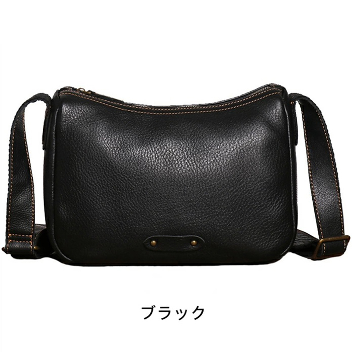 - 男女兼用 メンズ 牛革 ショルダーバッグ 斜めがけ メッセンジャーバッグ 本革 レザーバッグ 鞄 Zbg0676-1 ブラック