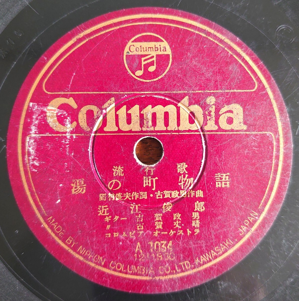 - 【SP盤レコード/薄ヒビ】Columbia A1034 流行歌/湯の町物語 近江俊郎/泉の雨 高峰麻梨子