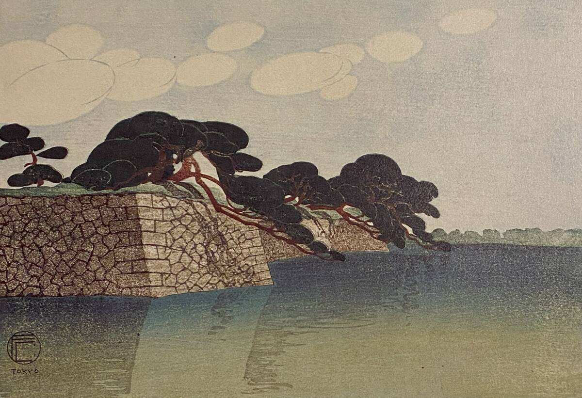 - フリッツ・カペラリ、〈濠端の松〉、希少画集画、高級新品額・額装付、状態良好、送料込み